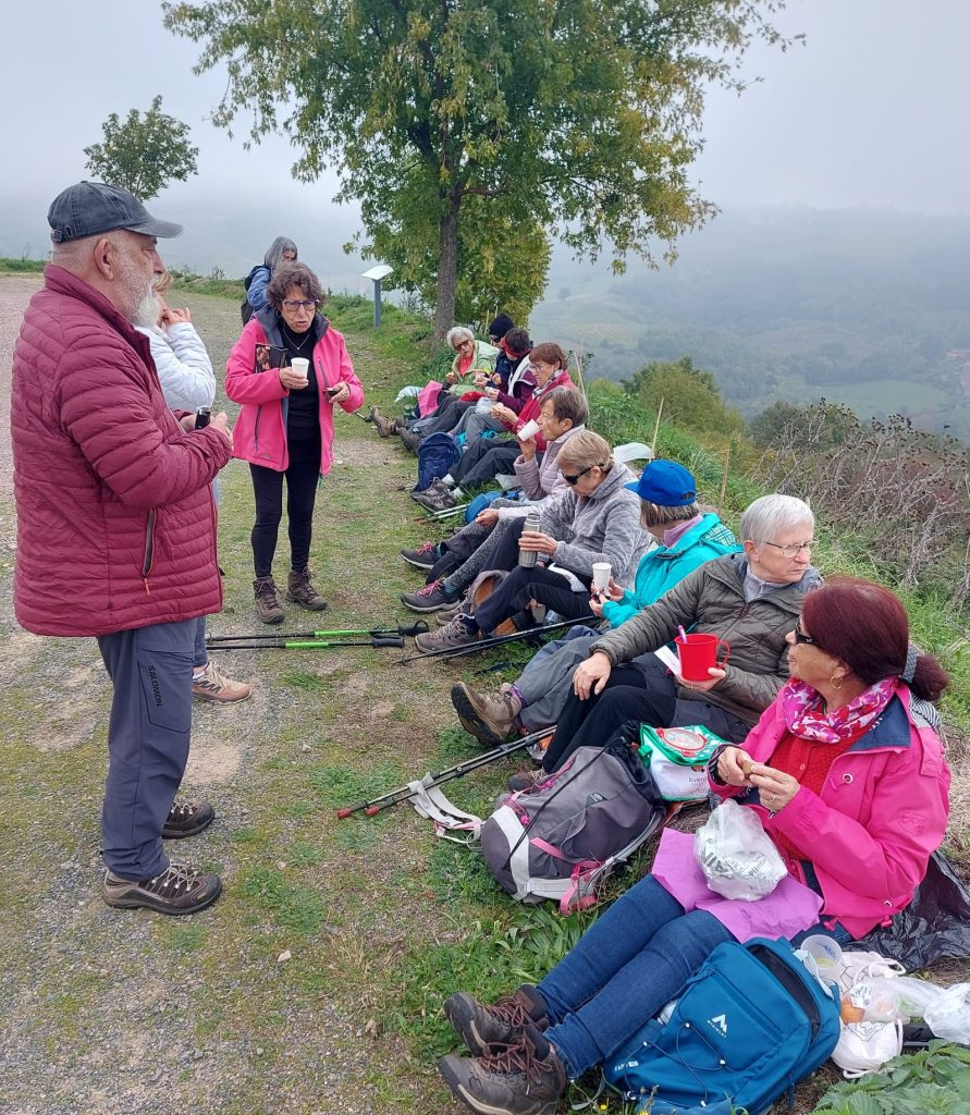 Malgré les vacances nous sommes 15 à profiter d’une météo automnale mais sèche pour randonner depuis la chapelle Saint-Vincent à Saint-Laurent-d’Agny vers le village de Rontalon où nous faisons une halte pour le pique-nique.