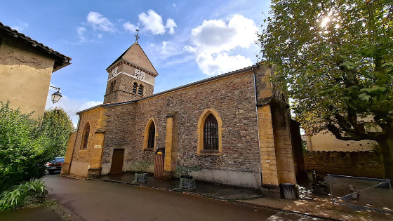 Nous reprenons bientôt la route pour visiter le village de Theizé où nous arrivons peu après la pause déjeuner. Là aussi les belles pierres dorées ont servi à édifier le château les églises et les maisons. Après une douzaine de kilomètres, par une météo menaçante mais encore sèche nous rejoignons les voitures.