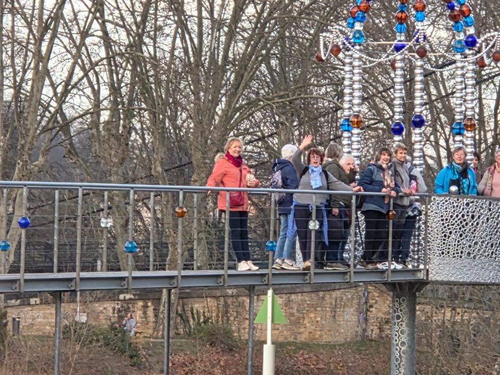 Une douzaine de participantes pour cette balades qui nous a fait cheminer le long de la voie verte sur la commune de Caluire puis dans les ruelles, qui nous ont conduites à traverser le pont Paul Bocuse pour rejoindre les rues de Collonges.