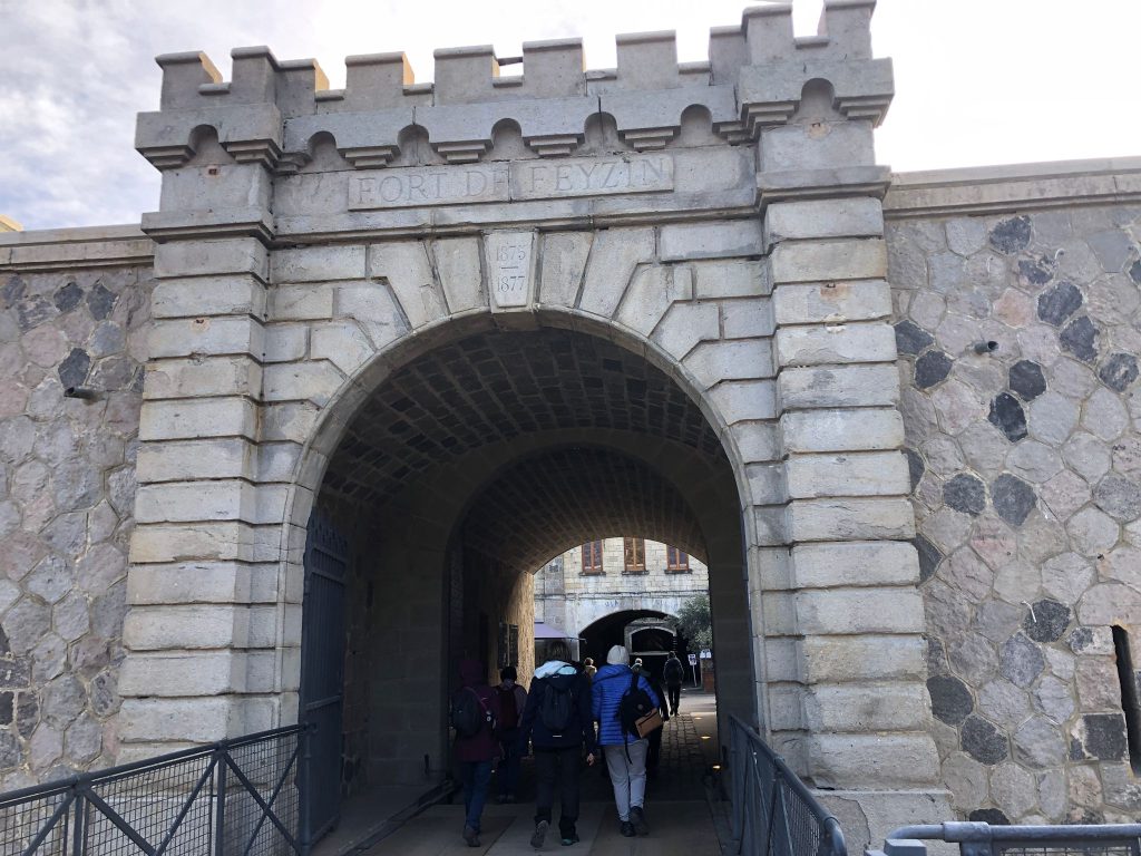 Nous pique niquons au pied des murailles du château en nous abritant du vent.