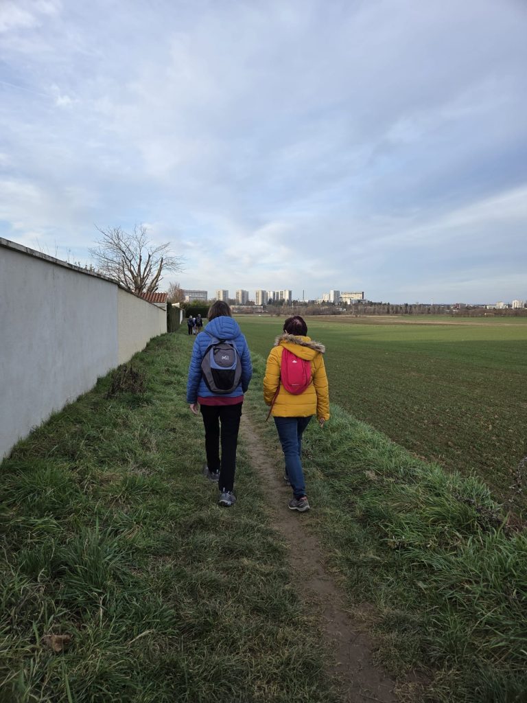 Il fait gris avec une température légèrement positive… c’est un bon pas que nous parcourons environ 10 km sur les chemins proches de la tour de Chassieu et du grand stade de Décines