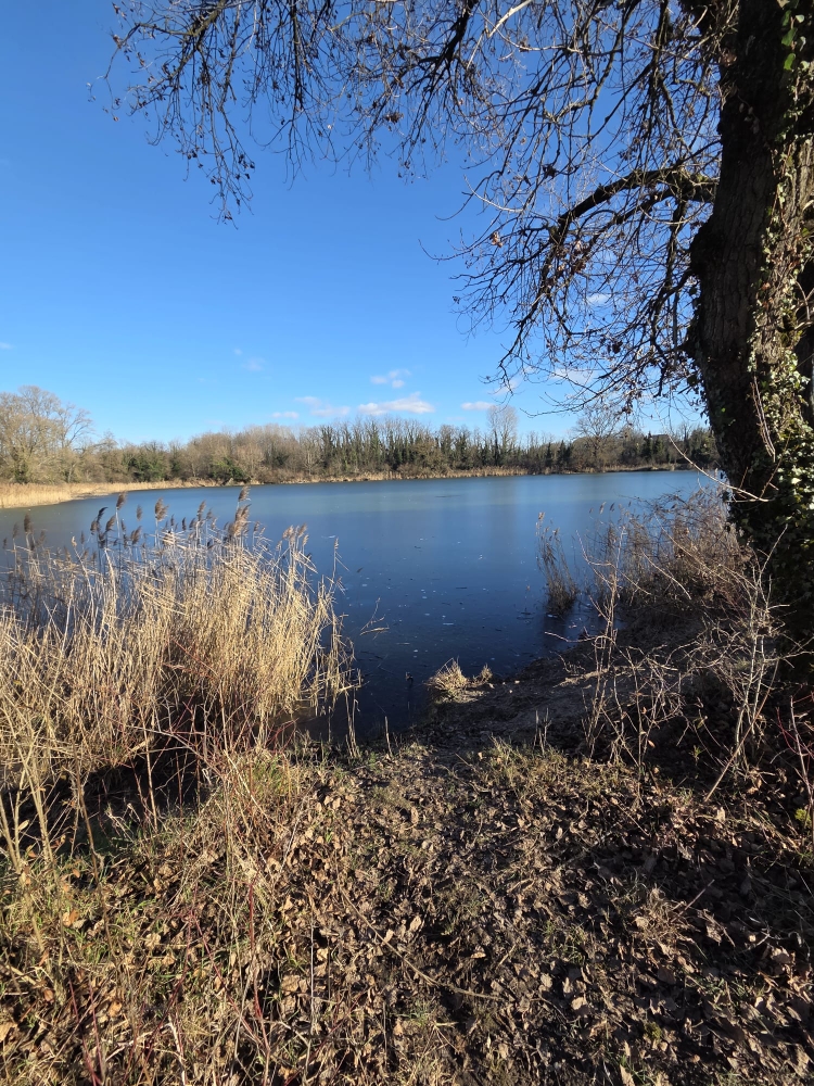 Balade de 7 km, en demi-journée, dans le froid vif mais sous le soleil autour du parc des étangs sur la commune de GENAS.